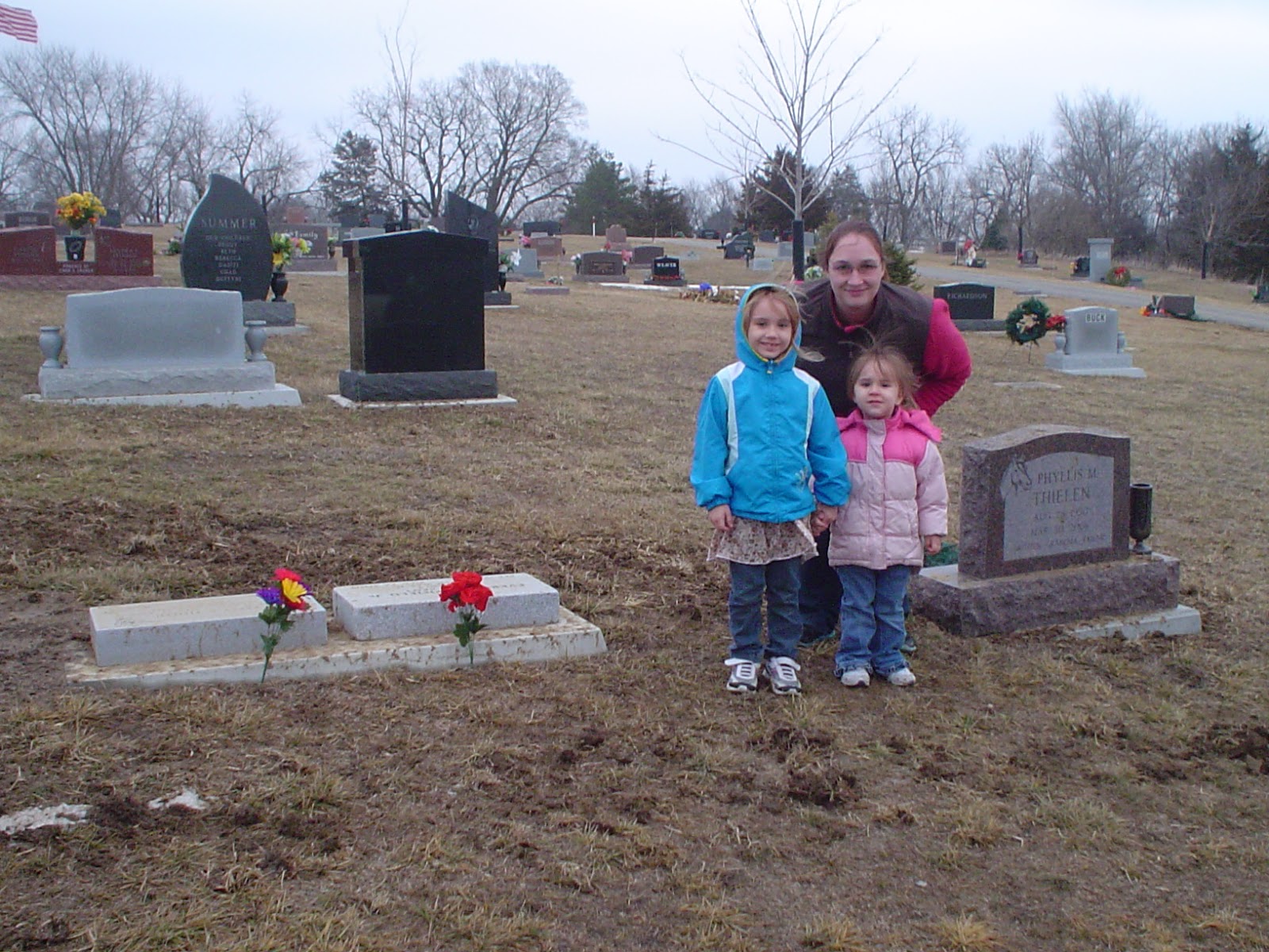 On a bright note, we had a family outing with Dean and the daughter and granddaughters this past week. It was quite a trip, just fifty miles away, but took us half a day to accomplish. It included a quick run into a lawyer's office for me to sign the tax forms for my parents' final years. Then we met a cousin at Burger King and visited with her for almost an hour. Followed by a quick visit to my parents' graves, where the girls left some "sturdy" plastic flowers. The only kind to survive these cold, wintry Nebraska days.